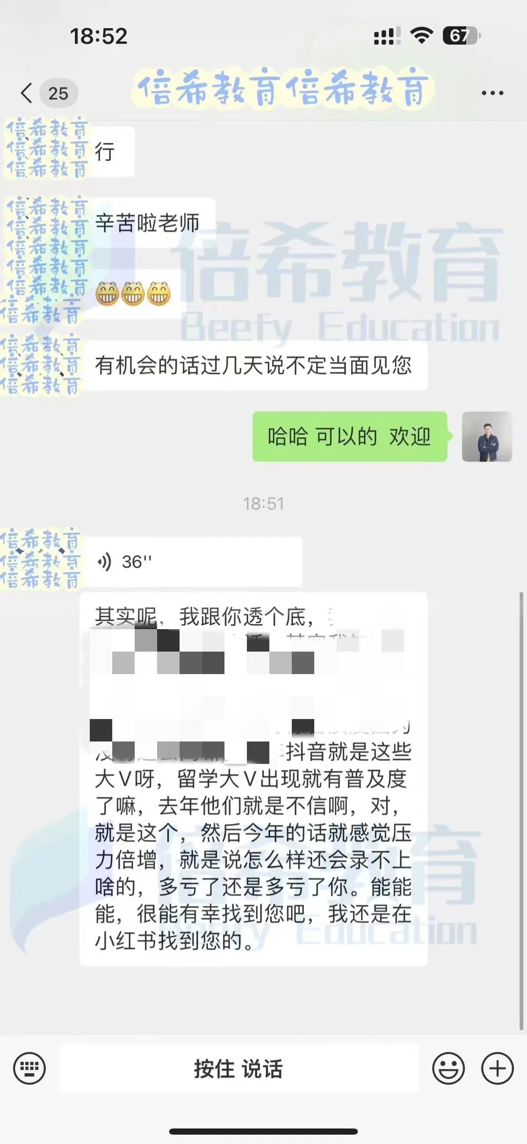 《倍希日报》177期喜报金榜题名史同学中国传媒大学6月18日,史同学被中国传媒大学战略合作伙伴2+2出国留学预备课程项目项目录取!01中国传媒大学国际本科2+2专业:新闻媒体与传播、影视制作、数字媒体艺术、创意与艺术管理对接国家:英美澳等学费:9.8w/年—11.8w/年招生对象:应往届高中毕业生及同等学力者要求:参加学校自主招生考试详情请戳>>>招生简章|中国传媒大学2+2国际本科中国传媒大学02录取通知031V1规划升学方案我们秉持“适合自己的就是最好的”的规划理念,尊重每一位学生的独特性,理解不同家庭的诉求,提供科学可行留学方案规划。致力于通过系统规划帮助中国孩子打破千军万马过独木桥的魔咒,升入理想学府,打开名校之门。选择倍希,孩子未来将倍有希望!*联系方式01扫码咨询,1V1定制专属留学方案02扫码关注,超多干货尽在小红书03扫码关注,更多内容尽在抖音< OFFER · 往期回顾 >五月份国际本科offer(部分)六月份国际本科offer(部分)七月份国际本科offer(部分)马来西亚offer(部分)●倍希教育|一对一定制留学●最全资讯|你必须了解得留学知识●国际本科|你必须知道得知识●国际本科|你不得不看得招生简章●【新马泰乌】你必须知道得知识●【新马泰乌】你不得不看得招生简章●中外合作硕士—你不得不知道得知识END本公众号部分内容来自互联网,版权归原作者所有,如无意中侵犯了哪个媒体、公司、企业或个人等的知识产权,请及时通知我们,以便我方迅速删除相关图文内容,避免给双方造成不必要的损失。